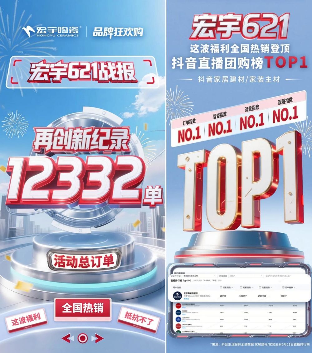 正在数字化海潮的鞭策下,曲播已成为家居品牌触达用户的焦点阵地,但若何将流量为无效订单,一直是行业难题。宏宇陶瓷以持续迭代的曲播立异,给出了教科书级的谜底,全年缔制多次销量佳绩,坐稳“陶瓷界曲播带货王”的宝座。